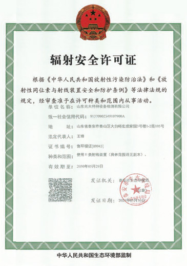 山東光大特種設(shè)備檢測有限公司是經(jīng)山東省市場監(jiān)督管理局核準的甲類B1特種設(shè)備綜合檢驗機構(gòu)。2017年9月30日取得了山東省市場監(jiān)督管理局頒發(fā)的《檢驗檢測機構(gòu)資質(zhì)認定證書》。2018年2月22日取得了山東省市場監(jiān)督管理局頒發(fā)的《特種設(shè)備檢驗檢測機構(gòu)核準證》(起重機械)檢驗檢測資質(zhì)。2021年11月取得山東省市場監(jiān)督管理局版發(fā)的《特種設(shè)備檢驗檢測機構(gòu)核準證》(安全閥在線、離線)校驗資質(zhì)。2023年11月取得山東省市場監(jiān)督管理局頒發(fā)的甲類檢驗機構(gòu)B1《特種設(shè)備檢驗檢測機構(gòu)核準證》,具有壓力容器(RD2...